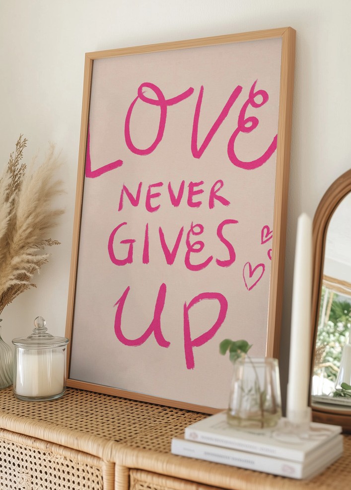 Love Never Gives Up Typography Pink Plakat
