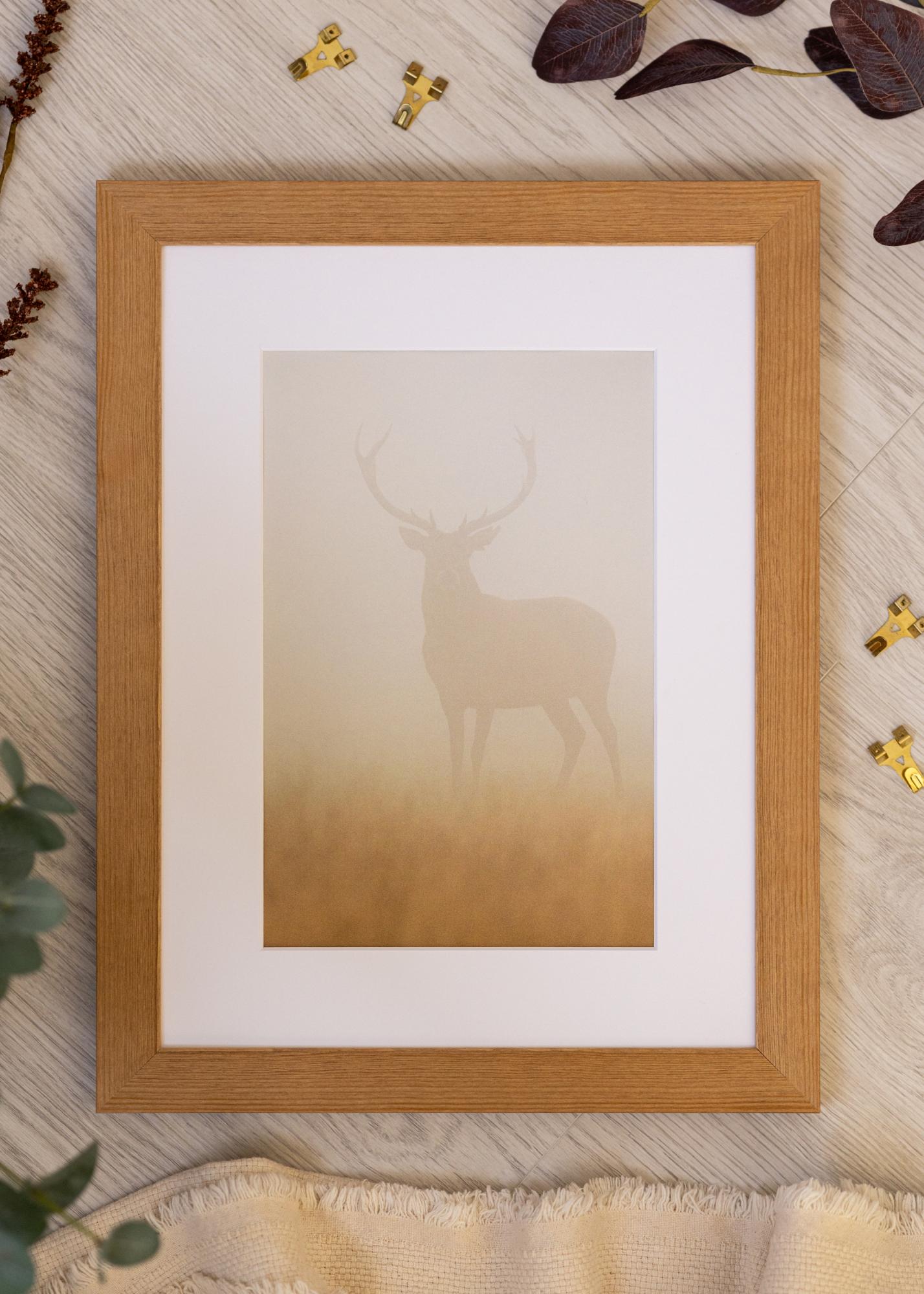 For at sikre, at akrylglasset er i perfekt stand ved levering, har det en beskyttelsesfilm på begge sider, som nemt kan fjernes før brug. Med sin størrelse på 50 x 70 cm er denne ramme et fremragende valg til at fremhæve dine billeder derhjemme eller på kontoret. Lad denne elegante egetræsfarvede ramme blive en del af din indretning og give dine billeder den opmærksomhed, de fortjener.