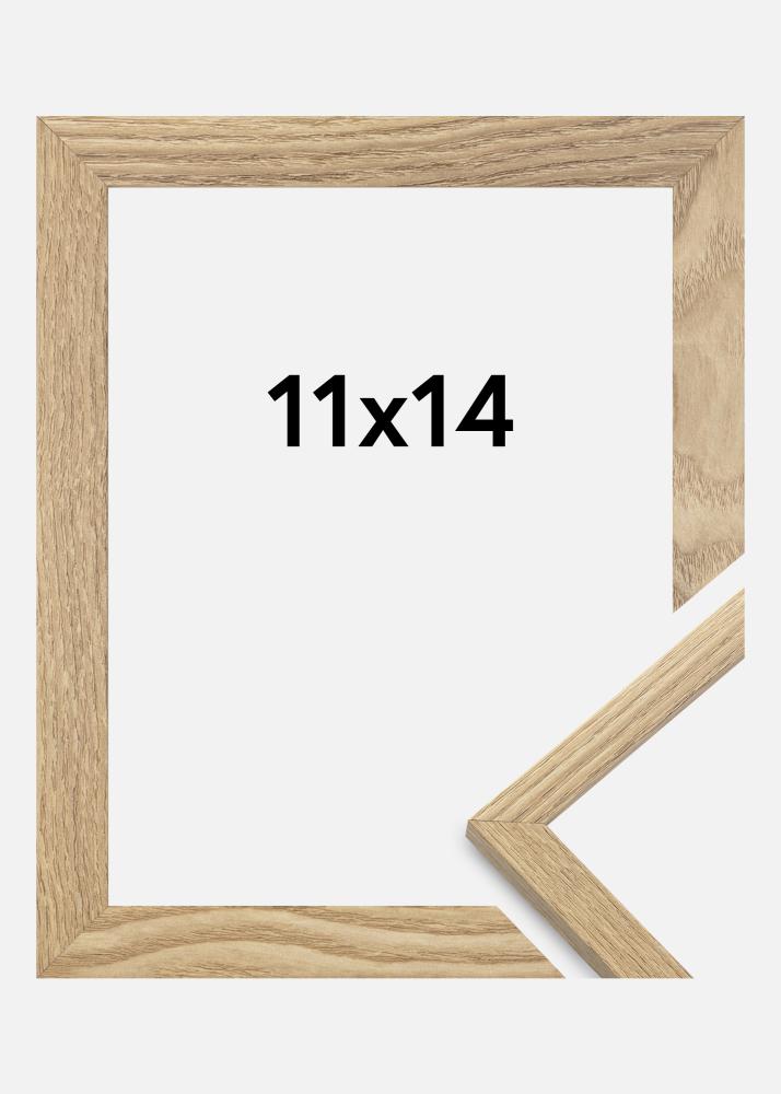 Rammen er fremstillet i MDF-materiale med en egetræsefterlignet folieret overflade og har en tynd rammeprofil på 14 mm. Takket være inderdybden (falsdybden) på 12 mm, er der god plads til at supplere dine billeder med en flot passepartout.