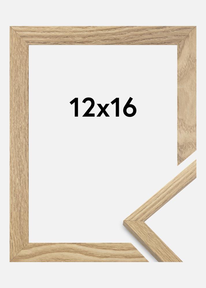 Rammen er fremstillet i MDF-materiale med en egetræsefterlignet folieret overflade og har en tynd rammeprofil på 14 mm. Takket være inderdybden (falsdybden) på 12 mm, er der god plads til at supplere dine billeder med en flot passepartout.
