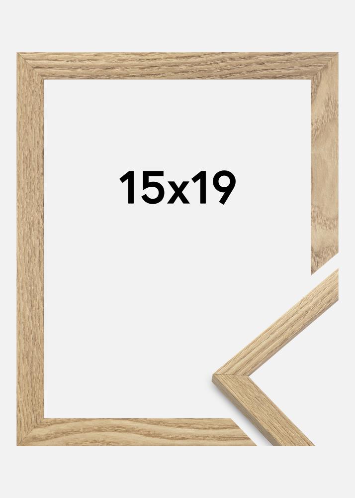 Rammen er fremstillet i MDF-materiale med en egetræsefterlignet folieret overflade og har en tynd rammeprofil på 14 mm. Takket være inderdybden (falsdybden) på 12 mm, er der god plads til at supplere dine billeder med en flot passepartout.