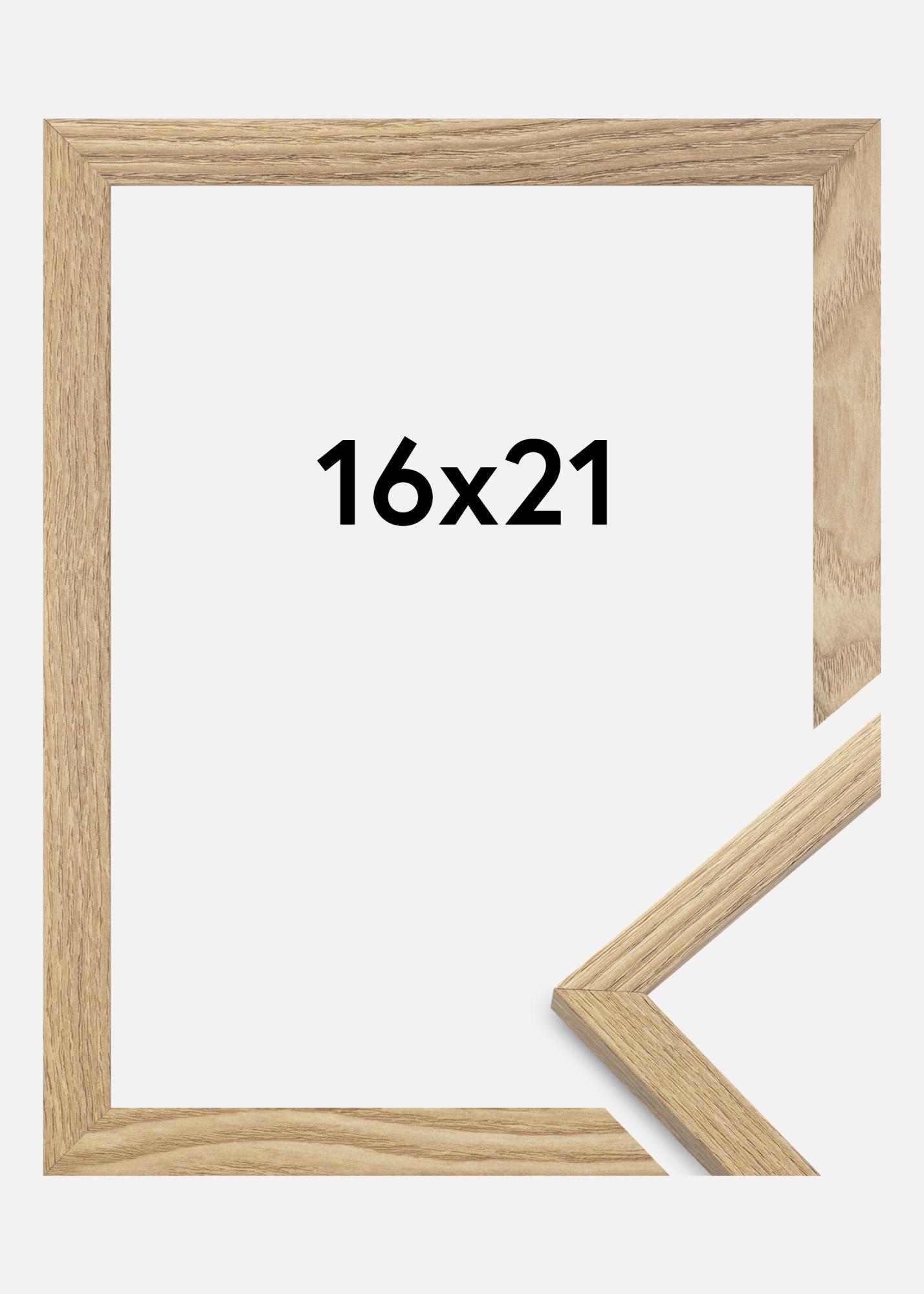 Rammen er fremstillet i MDF-materiale med en egetræsefterlignet folieret overflade og har en tynd rammeprofil på 14 mm. Takket være inderdybden (falsdybden) på 12 mm, er der god plads til at supplere dine billeder med en flot passepartout.