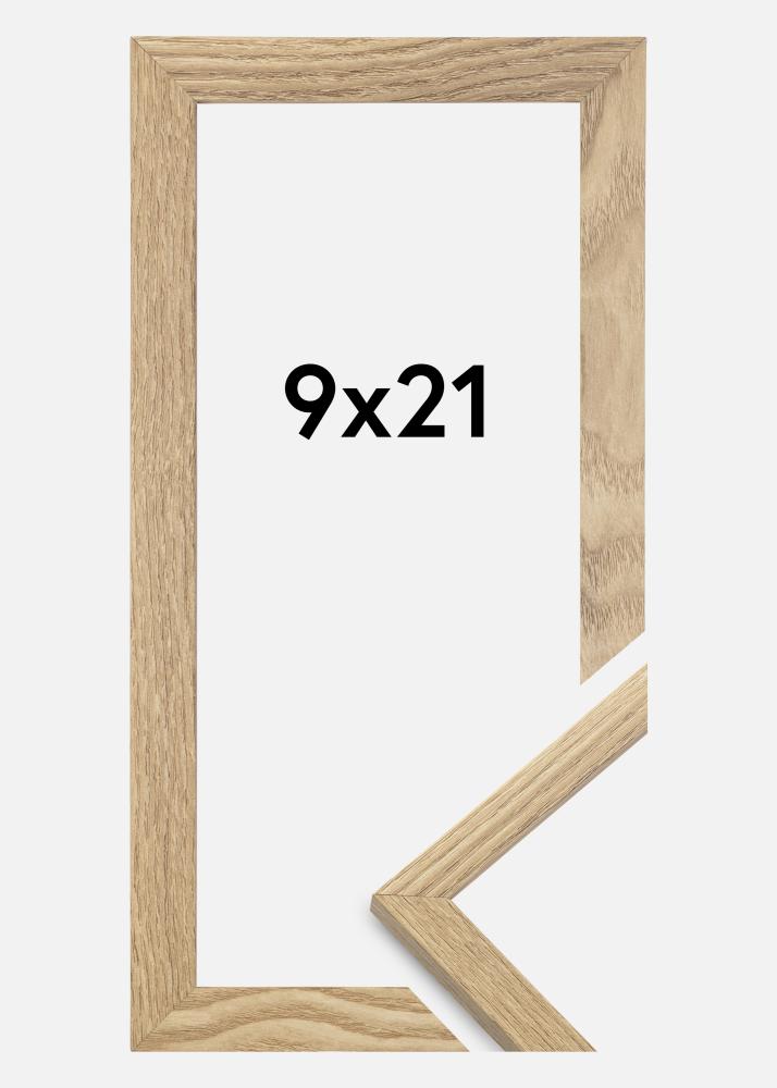 Rammen er fremstillet i MDF-materiale med en egetræsefterlignet folieret overflade og har en tynd rammeprofil på 14 mm. Takket være inderdybden (falsdybden) på 12 mm, er der god plads til at supplere dine billeder med en flot passepartout.