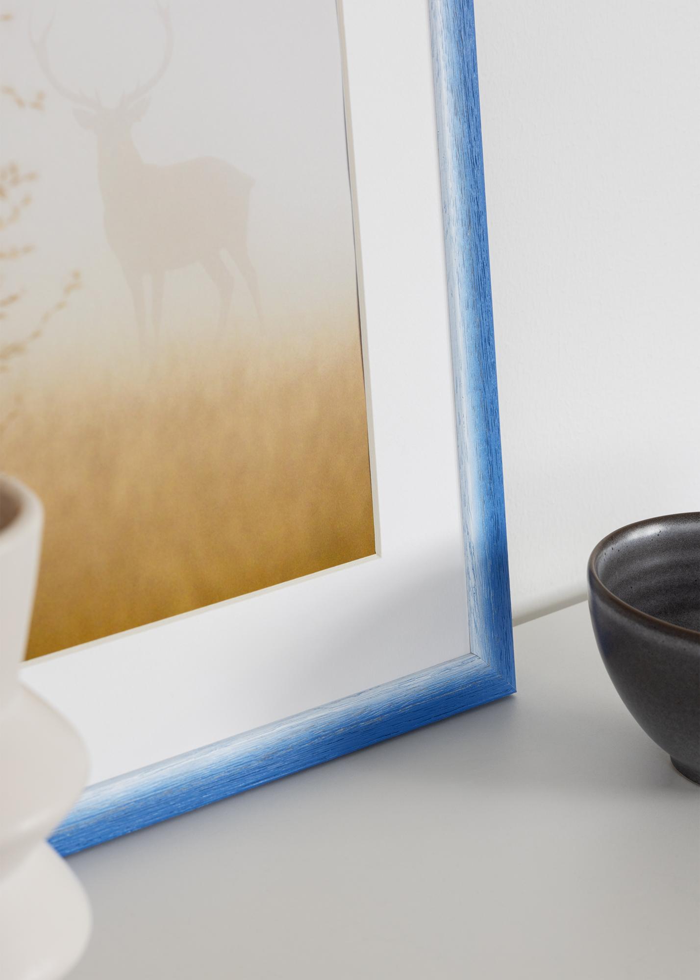 Denne fotoramme i størrelsen 50x70 cm er en perfekt kombination af moderne design og klassisk elegance. Med sin bløde Blå tone og glatte overflade fremhæver den den naturlige træstruktur på en subtil måde. Den 23 mm brede Ramme liste giver et stilrent og enkelt udtryk, så motivet virkelig får lov at være i centrum.